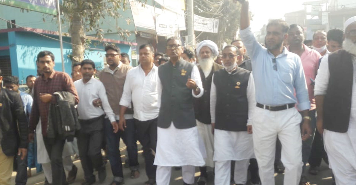 নোয়াখালীতে সকালে হরতাল চলাকালে নেতাকর্মীদের নিয়ে মিছিল করেন কাদের মির্জা