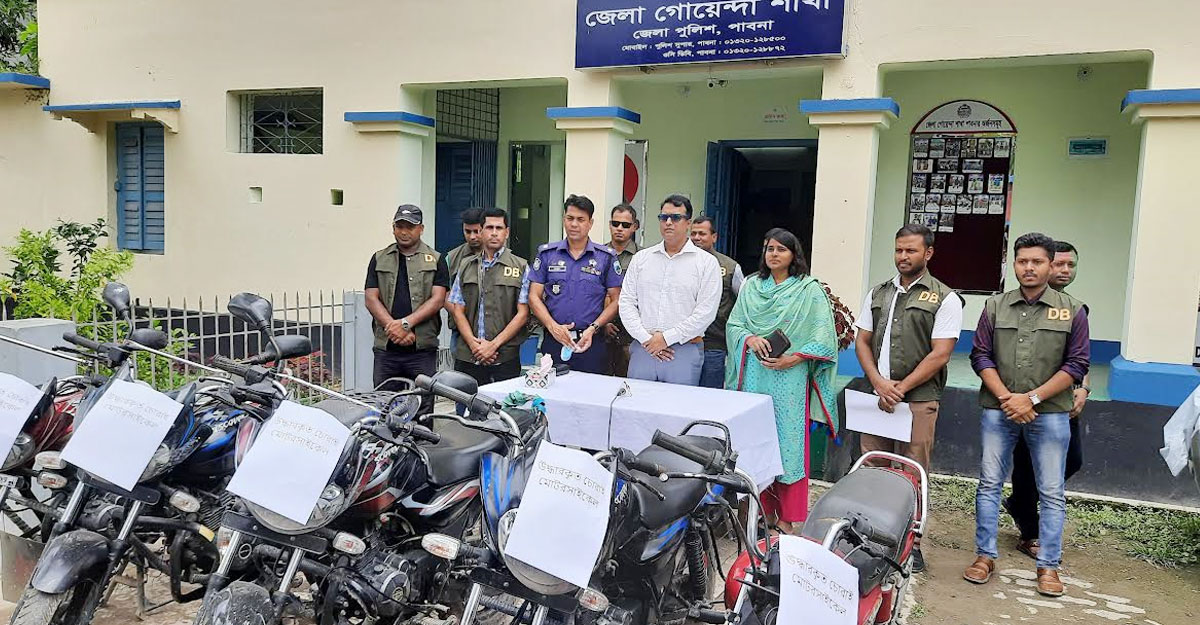 পুলিশ সুপার জানান, গত বৃহস্পতিবার (৩ জুন) দুপুরে নওগাঁর আত্রাইয়ের মাধাইমুড়ি এলাকার আসাদুর রহমানের একটি ডিসকভার মোটরসাইকেল পাবনার চিফ জুডিশিয়াল ম্যাজিস্ট্রেট আদালত ভবনের সামনে থেকে চুরি হয়। পরে তিনি সদর থানায় লিখিত অভিযোগ দিলে মাত্র কয়েক ঘণ্টার মধ্যে সিসিটিভির ফুটেজ ও গোপন সংবাদের ভিত্তিতে তথ্যপ্রযুক্তি সহায়তায় নাটোর জেলা ও পাবনার বিভিন্ন এলাকায় অভিযান চালিয়ে পাঁচটি মোটরসাইকেল উদ্ধার করেন গোয়েন্দা পুলিশের সদস্যরা।