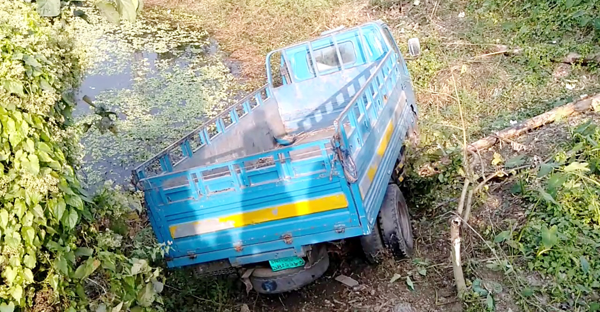 মাদারীপুরে বাসের ধাক্কায় খাদে পিকআপ