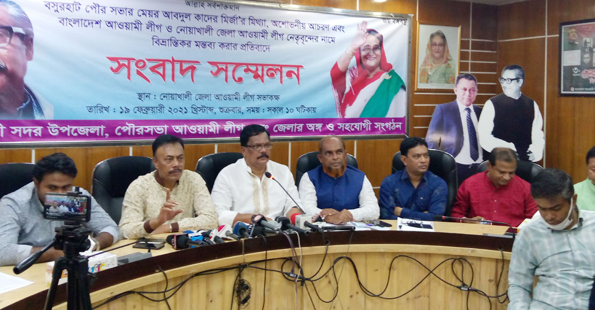 শুক্রবার (১৯ ফেব্রুয়ারি) বেলা ১১টার দিকে ‘নোয়াখালী সদর উপজেলা, পৌরসভা আওয়ামী লীগ এবং জেলার অঙ্গ ও সহযোগী সংগঠন’ এর ব্যানারে জেলা আওয়ামী লীগের কার্যালয়ের সভাকক্ষে আয়োজিত সংবাদ সম্মেলন থেকে এ দাবি জানান তারা। কাদের মির্জার মিথ্যাচার, অশোভন আচরণ ও আওয়ামী লীগ নেতৃবৃন্দের নামে বিভ্রান্তিকর মন্তব্যের প্রতিবাদে এ সংবাদ সম্মেলনের আয়োজন করা হয়।