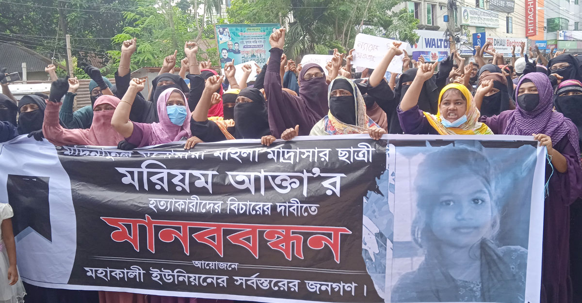নিহত মরিয়মের বড় মামা শহিদুল ইসলাম জন্টু বলেন, ‘আমার বোন সকাল ৯টায় আমার ভাগ্নিকে খাবার দিয়ে আসছে। ১০টা বাজে ওর সঙ্গে শেষ কথা বলে আসছে। হুজুর নামের যে ভণ্ডগুলো আছে, এগুলোর প্রকাশ্যে ফাঁসি চাই। সারাদেশে এমনকি বিশ্বে যেন এ রকম ঘটনা আর না হয়।’