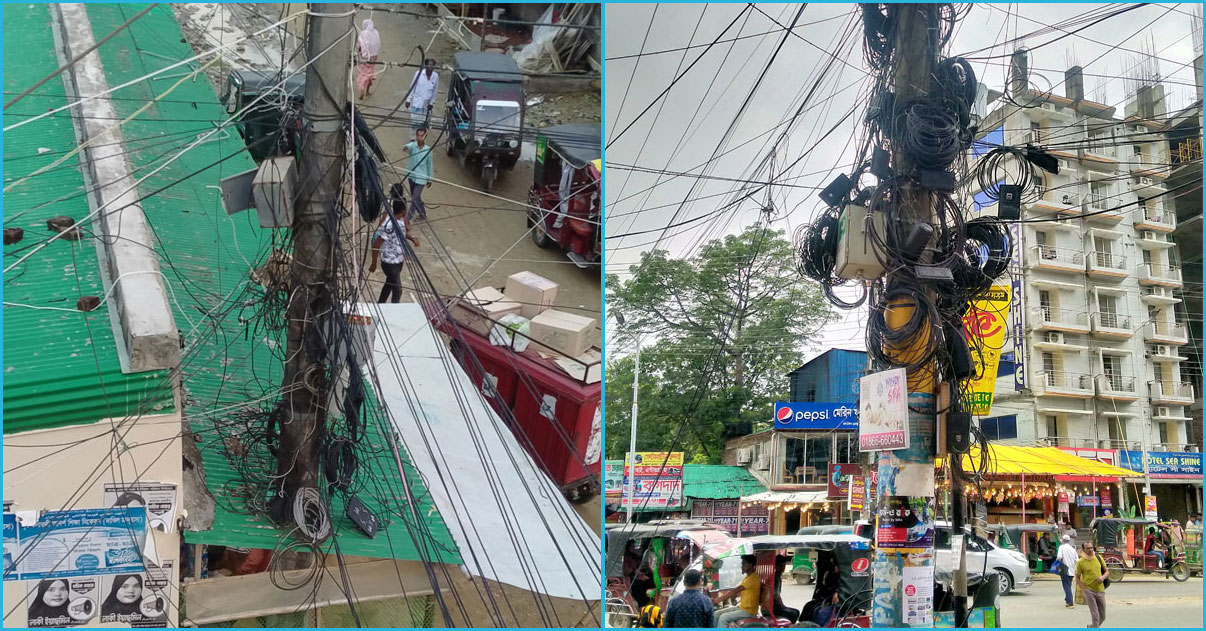কক্সবাজারে ঝুলন্ত তারের জঞ্জাল, সড়কে বাড়ছে ঝুঁকি