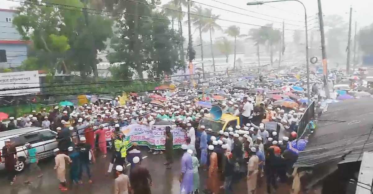 মৌলভীবাজারে বৃষ্টি উপেক্ষা করে হাজারো মানুষের বিক্ষোভ