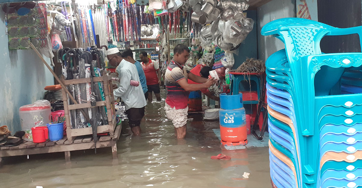 সুনামগঞ্জে বন্যা পরিস্থিতির অবনতি হয়েছে। বৃহস্পতিবার (১৬ জুন) ভোরে সুনামগঞ্জ শহরের সুরমা নদীর তীরবর্তী সব এলাকায় ঘরবাড়ি ও দোকানপাটে পানি ঢুকেছে। হাঁটু থেকে কোমর সমান পানি হয়েছে শহরের সবচেয়ে গুরুত্বপূর্ণ ব্যবসায়িক এলাকাগুলোতে। বন্ধ হয়ে গেছে দোকানপাট।