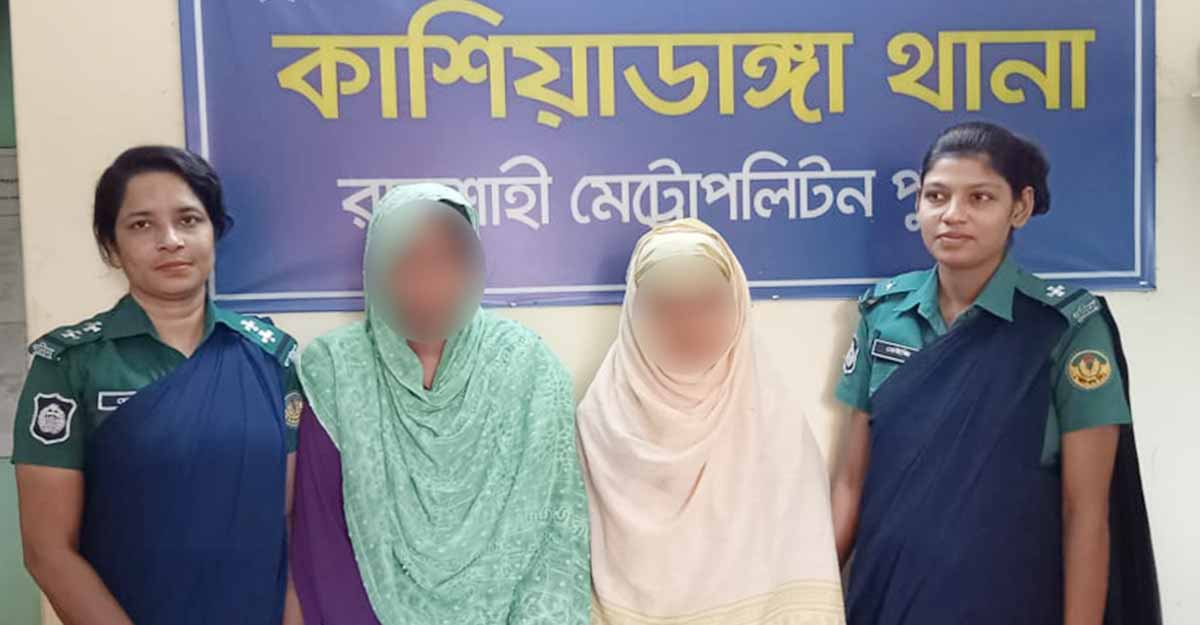 এ ঘটনায় বুধবার (১৫ জুন) রাতে দুই নারীকে গ্রেপ্তার করেছে পুলিশ। তারা হলেন- সায়েরগাছা এলাকার একরামুল ইসলাম ভাদুর মেয়ে মেরিনা খাতুন (২১) ও একই এলাকার ইশা হকের মেয়ে নেশা খাতুন (২২)।