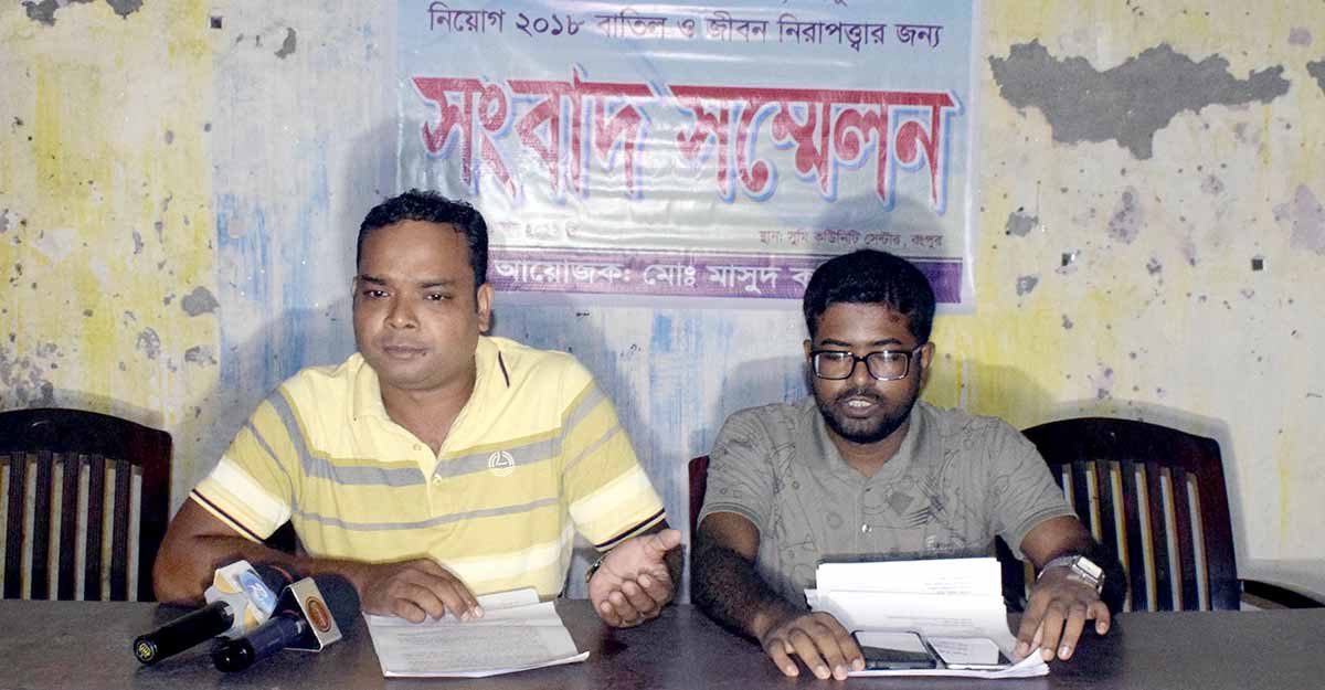 লিখিত বক্তব্যে মাসুদ করিম বলেন, কর অঞ্চল রংপুর এর নিয়োগ পরীক্ষা-২০১৮ এর অফিস সহায়ক পদে এ বছরের ২১ মে এবং প্রধান সহকারী পদে ১০ জুন লিখিত পরীক্ষা অনুষ্ঠিত হয়। প্রধান সহকারী পদে লিখিত পরীক্ষার প্রকাশিত ফলাফলে আমার রোল নম্বর ছিল না। গত ১২ জুন অফিস সহায়ক পদে মৌখিক পরীক্ষা কর কমিশনারের কার্যালয়ে অনুষ্ঠিত হয়। এতে ভাইভা বোর্ড হাতের লেখা মিল না পাওয়ায় প্রক্সি দিতে আসা চারজনকে আটক করে পুলিশে সোপর্দ করেন। কিন্তু ওই দিন রাতে সহকারী কর কমিশনার কর্তৃক তাদেরকে থানা থেকে ছাড়িয়ে নেয়া হয়, যা উদ্বেগজনক।