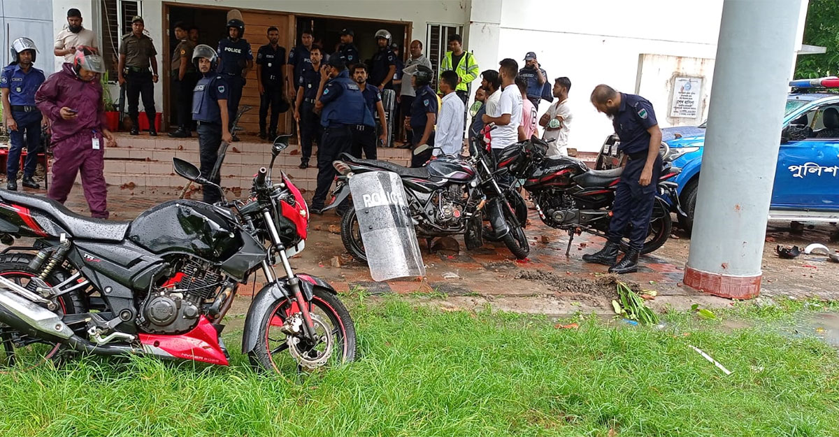 সোমবার (২০ জুন) দুপুরে হঠাৎ স্থানীয় জনতা পোস্টকারীর বিচারের দাবিতে মিছিল করে এবং থানায় প্রবেশের চেষ্টা করে। তখন পুলিশ বাধা দিলে সংঘর্ষে রূপ নেয়।