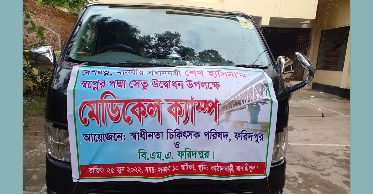 পদ্মা সেতুর উদ্বোধনী অনুষ্ঠানের জনসভায় এসে কেউ যদি অসুস্থ পড়েন, তাদের চিকিৎসাসেবা দেওয়ার জন্য ফরিদপুর থেকে ৩৫ সদস্যবিশিষ্ট একটি মেডিকেল দল রওনা দিয়েছে মাদারীপুরের শিবচরে।