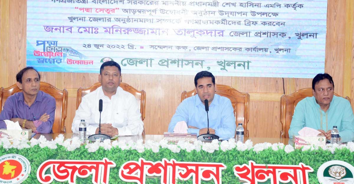 প্রেস ব্রিফিংয়ে খুলনার জেলা প্রশাসক মো. মনিরুজ্জামান তালুকদার জানান, পদ্মা সেতুর উদ্বোধনী অনুষ্ঠান উপলক্ষ্যে জেলা প্রশাসন খুলনার পক্ষ থেকে বর্ণাঢ্য কর্মসূচি গ্রহণ করা হয়েছে। প্রধানমন্ত্রী শেখ হাসিনা ২৫ জুন সকাল ১০টায় বাংলাদেশের সক্ষমতার প্রতীক স্বপ্নের পদ্মা সেতু উদ্বোধন করবেন।