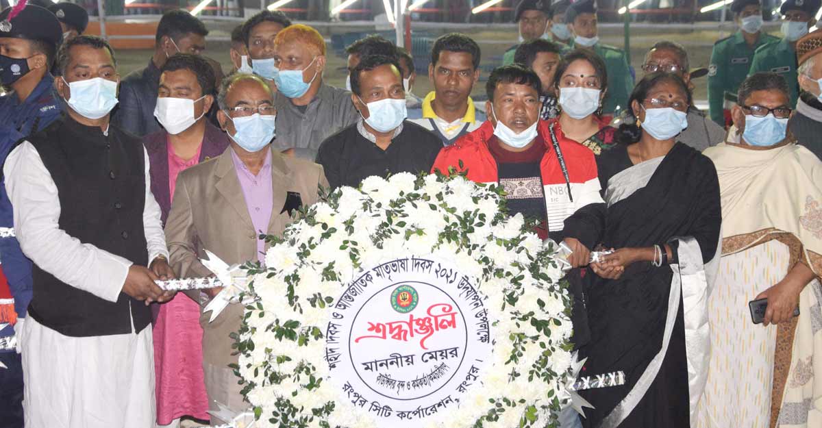 রাত ১২টা এক মিনিট থেকে ভাষাসৈনিক পরিবার, রংপুর বিভাগীয় কমিশনার আবদুল ওয়াহাব ভূঞা, সিটি মেয়র মোস্তাফিজার রহমান মোস্তফা, পুলিশের রংপুর রেঞ্জ ডিআইজি দেবদাস ভট্টাচার্য্য, মেট্রোপলিটন পুলিশের উপপুলিশ কমিশনার মহিদুল ইসলাম, রংপুর জেলা প্রশাসক আসিব আহসান, পুলিশ সুপার বিপ্লব কুমার সরকার, জেলা পরিষদ চেয়ারম্যান ছাফিয়া খানমসহ আওয়ামী লীগ ও এর সহযোগী সংগঠন, জাতীয় পার্টি, বিএনপি, জাসদ, বাসদ (মার্কসবাদী) ও জাতীয় শ্রমিক লীগ শ্রদ্ধাঞ্জলি নিবেদন করে।