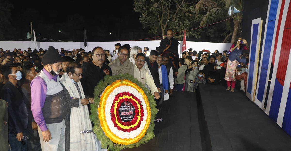 শ্রদ্ধা জানাচ্ছে রাজশাহী নগর আওয়ামী লীগ/ ছবি- ঢাকা পোস্ট