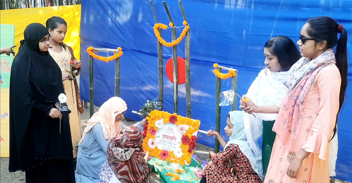 রোববার (২১ ফেব্রুয়ারি) সকাল ১০টায় ময়মনসিংহ নগরীর খাগড়হর এলাকায় মরহুম অ্যাডভোকেট আজিজুল হক ইনক্লুসিভ স্পোর্টস অ্যান্ড এডুকেশন একাডেমি প্রাঙ্গণে নিজেদের তৈরি এ মিনারের বেদিতে ফুল দিয়ে শ্রদ্ধা জানিয়েছে বিশেষ চাহিদাসম্পন্ন কোমলমতি এসব শিশু, যাদের প্রত্যেকের বয়স ৫ থেকে ১৭ বছর।