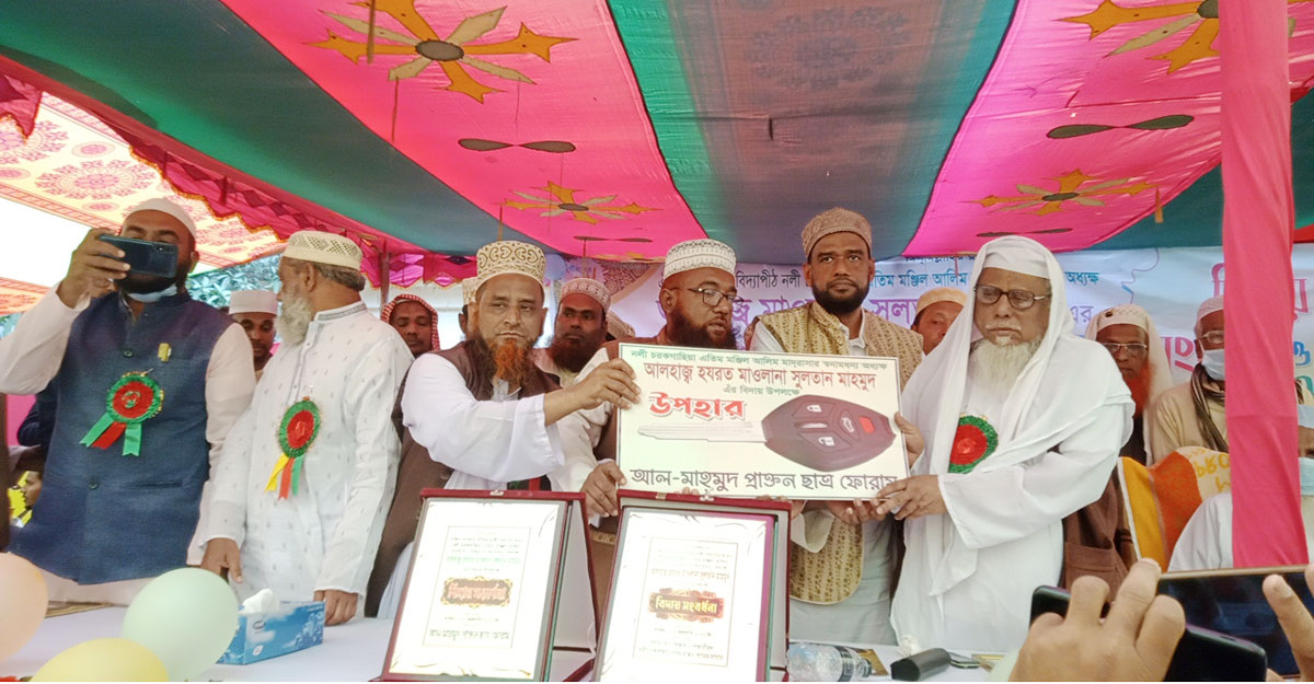 সংবর্ধনা অনুষ্ঠানের আয়োজক আল মাহমুদ প্রাক্তন ছাত্র ফোরামের সভাপতি আবু হানিফ নেসারী বলেন, আমরা প্রাক্তন শিক্ষার্থীরা উদ্যোগ নিয়ে স্যারকে ১৫ লাখ টাকায় গাড়িটি কিনে উপহার দিয়েছি। স্যারের কারণে মাদ্রাসা ও শিক্ষার্থীরা আজ আলোকিত মানুষ। এজন্য শুধুমাত্র তাকে আমরা সম্মানিত করার চেষ্টা করেছি।