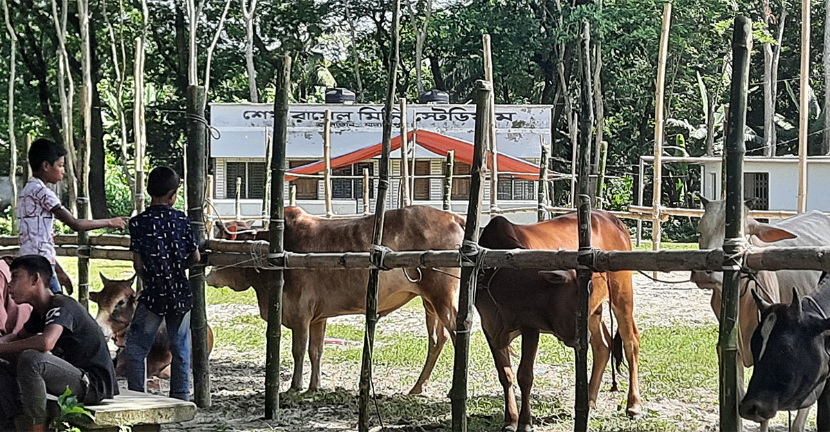 মাদারীপুরের কালকিনি উপজেলায় শেখ রাসেল মিনি স্টেডিয়ামে গরুর হাট বসানো হয়েছে। এতে এলাকার কিশোর-তরুণদের খেলাধুলা বন্ধ হয়ে গেছে। এতে ক্ষোভ প্রকাশ করেছেন স্থানীয় লোকজন। তবে পৌরসভার মেয়র বলছেন, এটা কোনো স্টেডিয়াম নয়। দীর্ঘদিন ধরে এখানে গরুর হাট বসত।