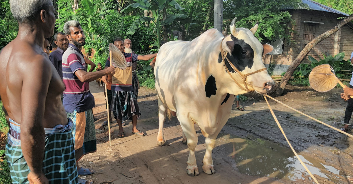 দিনমজুর ময়নুদ্দিন ঢাকা পোস্টকে বলেন, এক বছর আগে নিজের বাড়িতে পোষা একটি ষাঁড় ২ লাখ ২০ হাজার টাকায় বিক্রি করি এবং দুটি ছাগল বিক্রি করে ২ লাখ ৮০ হাজার টাকায় গরুটি পাশের গ্রাম থেকে ক্রয় করি। তখন গরুটির বয়স ছিল দুই বছর এবং ওজন ছিল ১০ মণ। বাড়িতে নিয়ে আসার পর প্রাকৃতিক উপায়েই তাকে খাওয়ানো হতো। তার খাবারের তালিকায় ছিল ছোলা, গম, ভুট্টা, ধান এবং কাঁচা ঘাস। গরিব মানুষ হওয়ায় বাজারের দামি কোনো খাবার খাওয়াতে পারিনি। কৃত্রিম উপায়ে মোটাতাজা করতে কোনো ওষুধও খাওয়ানো হয়নি।