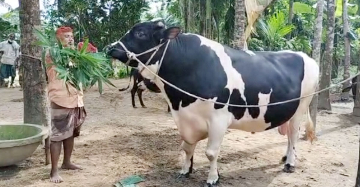 নেত্রকোণার দুর্গাপুর উপজেলার বিশাল আকৃতির গরু ‘রাজা’। ১৩০০ কেজি (সাড়ে ৩২ মণ) ওজনের এই গরুটির দাম হাঁকা হচ্ছে ১৩ লাখ টাকা। নিয়মিত খাদ্য তালিকার পাশাপাশি ছোলাবুট, মাল্টা, পেয়ারা ও কলা খাইয়ে নিজের সন্তানের মতোই ১১ ফুট দৈর্ঘ্য, ১০ ফুট প্রস্থ ও ৫ ফুট ৬ ইঞ্চি উচ্চতার এই ষাঁড়টিকে লালনপালন করেছেন কৃষক মোস্তফা মিয়া।