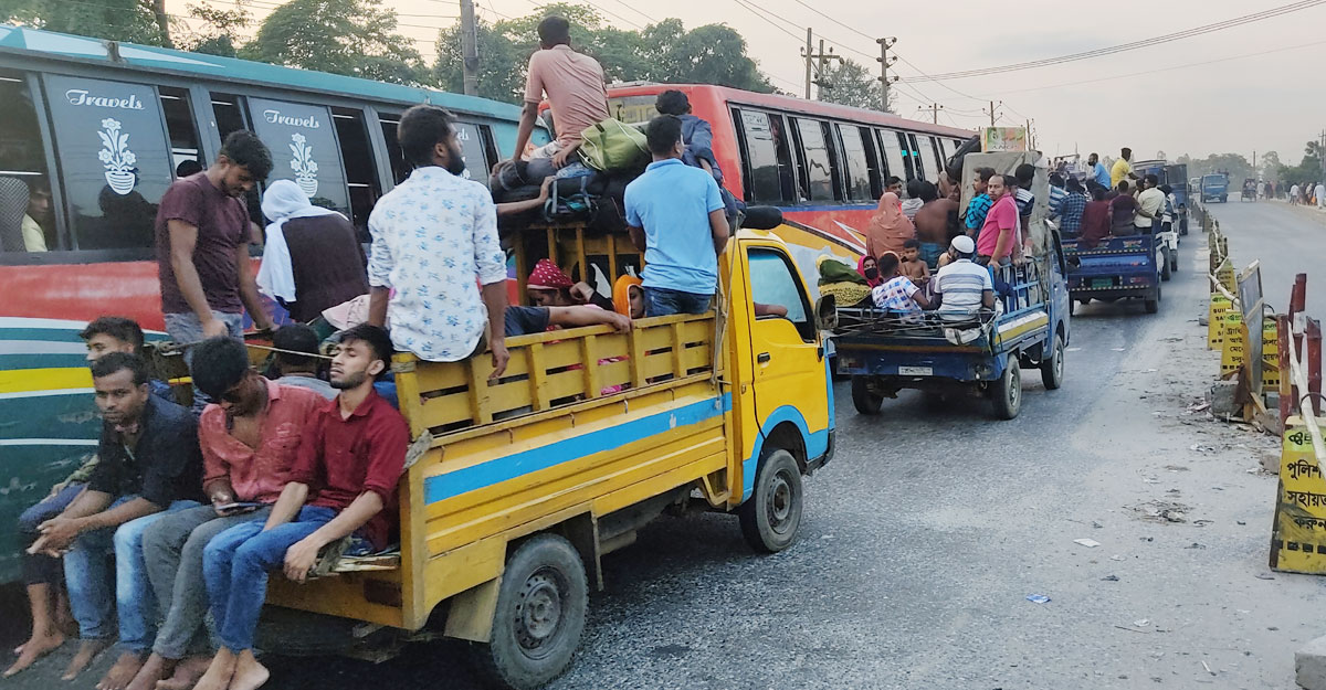 ঢাকা-টাঙ্গাইল মহাসড়কে নেই যানজট, ট্রাক-পিকআপে ছুটছে মানুষ