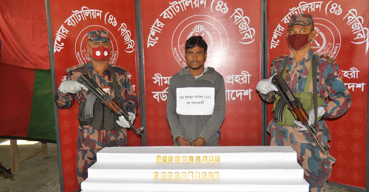 ৪৯ বিজিবির অধিনায়ক লে. কর্নেল মো. সেলিম রেজা জানান, একটি চক্র ভারতে পাচারের উদ্দেশ্যে যশোর থেকে স্বর্ণ বহন করে নিয়ে যাচ্ছে- এমন সংবাদের ভিত্তিতে শহরের পৌর পার্ক এলাকায় অভিযান চালানো হয়। এ সময় ইমাদুল হোসেনের শরীরে বিশেষভাবে লুকানো অবস্থায় ২০ পিস স্বর্ণের বার পাওয়া যায়।