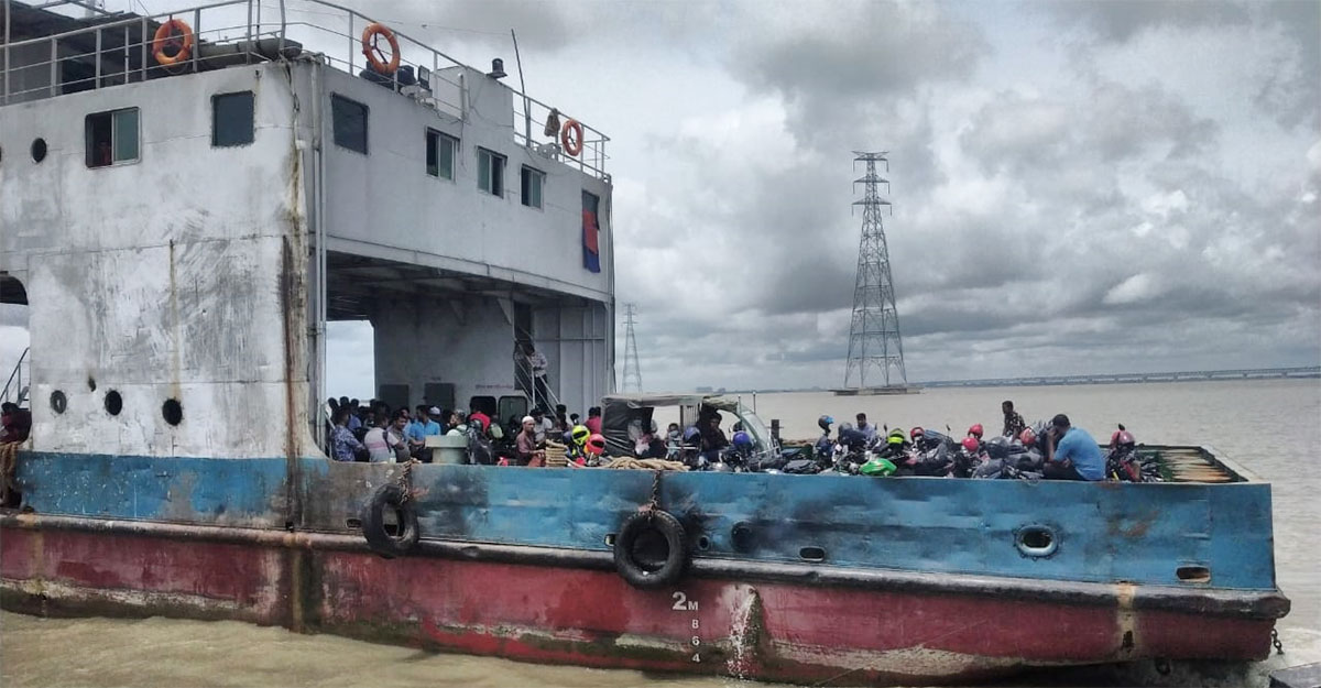 মানবিক বিবেচনায় শিমুলিয়া ঘাট থেকে মোটরসাইকেল পার