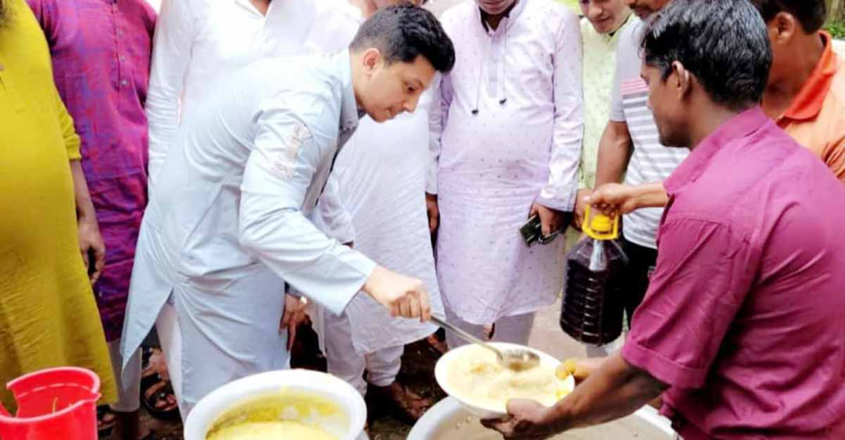 ১৪ মণ গোশত বিতরণ করলেন এমপি পুত্র সাবাব চৌধুরী