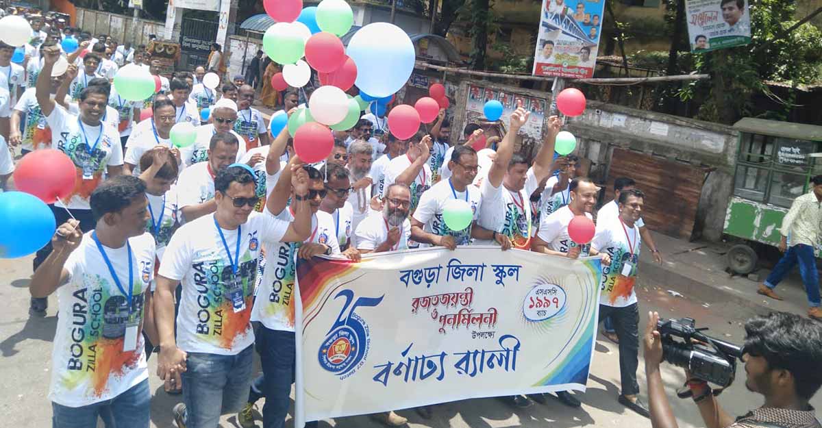 বগুড়া জিলা স্কুলের এসএসসি ১৯৯৭ সালের ব্যাচের সহপাঠীদের নিয়ে সোমবার দিনব্যাপী এক বর্ণিল মেলা অনুষ্ঠিত হলো। দীর্ঘ ২৫ বছর পর দেখা স্কুল জীবনের সহপাঠীদের সঙ্গে। এদিন সকাল থেকে স্মৃতিচারণ, অ্যাসেম্বলি, জাতীয় সঙ্গীত, শপথ পাঠ, প্রয়াত সহপাঠীদের স্মরণে নিরবতা পালন করার পর বর্ণাঢ্য র্যালি শেষে খেলাধুলাসহ নানা অনুষ্ঠানমালা চলে রাত পর্যন্ত। বেলা ১১টায় স্কুল মাঠ থেকে র্যালি বের করে শহর প্রদক্ষিণ করে।