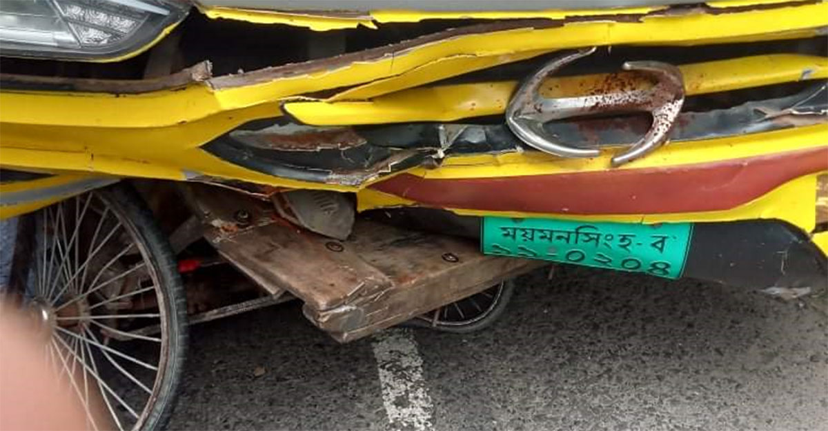 প্রত্যক্ষদর্শী ব্যক্তিরা জানান, ব্যাটারিচালিত ভ্যান নিয়ে নতুন শিকারপুর নামক স্থান অতিক্রম করছিলেন আলমগীর হোসেন। এ সময় ময়মনসিংহ থেকে ছেড়ে আসা কুয়াকাটাগামী শামীম পরিবহন (ময়মনসিংহ -ব-১১-০২০৪) সামনের দিক থেকে ভ্যানটিকে চাপা দেয়। এতে ঘটনাস্থলে আলমগীর মারা যান। চাকায় নিচে পড়ে ভ্যানটি দুমড়ে-মুচড়ে যায়।