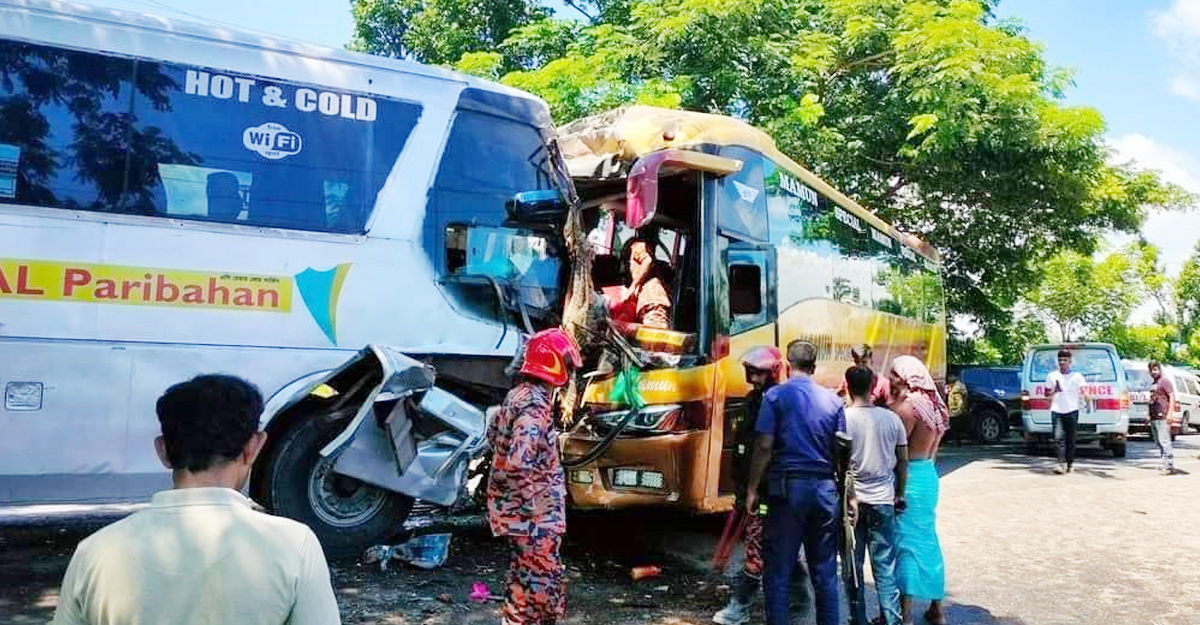 ফরিদপুরে দুই বাসের মুখোমুখি সংঘর্ষে আহত ১৩