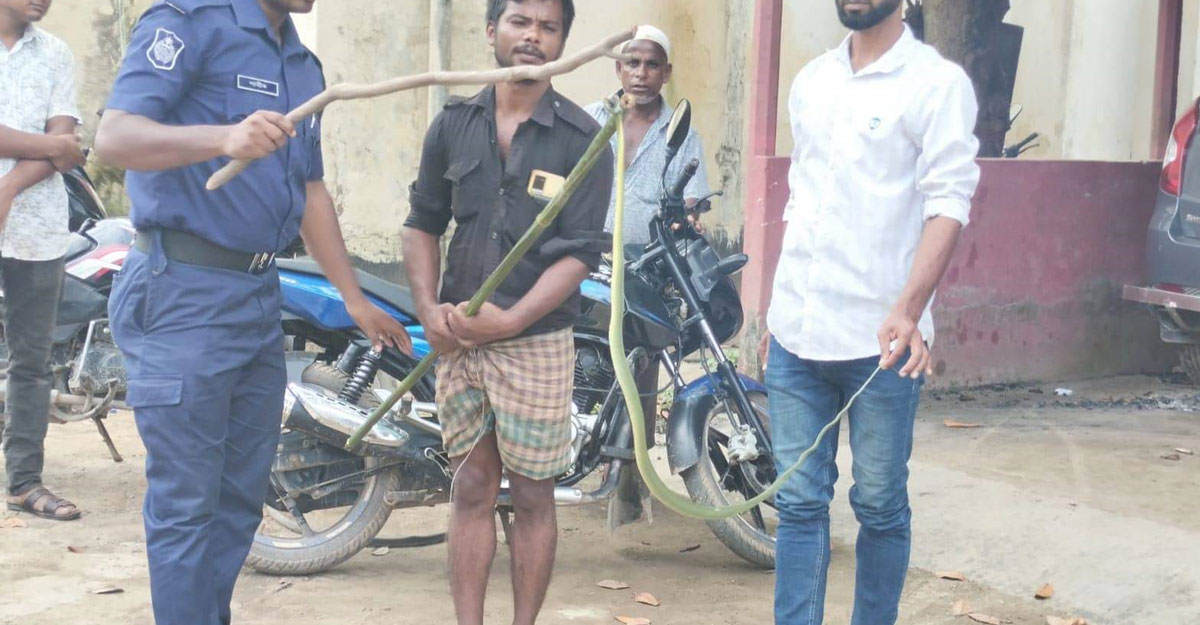 পুলিশ ও স্থানীয়দের সঙ্গে কথা বলে জানা গেছে, রোববার দুপুরে দেবল রায়ের স্ত্রী বসতঘর পরিষ্কার করছিলেন। ওই সময় ঘরের পালঙ্কের পাশে থাকা আলনার নিচ থেকে বেরিয়ে আসা সাপটি দেখতে পান তিনি। পরে তার চিৎকার শুনে প্রতিবেশীরা ছুটে গিয়ে সাপ দেখে থানায় খবর দেন। খবর পেয়ে পুলিশ ঘটনাস্থলে ছুটে গিয়ে সাপটি উদ্ধারের ব্যবস্থা করে।