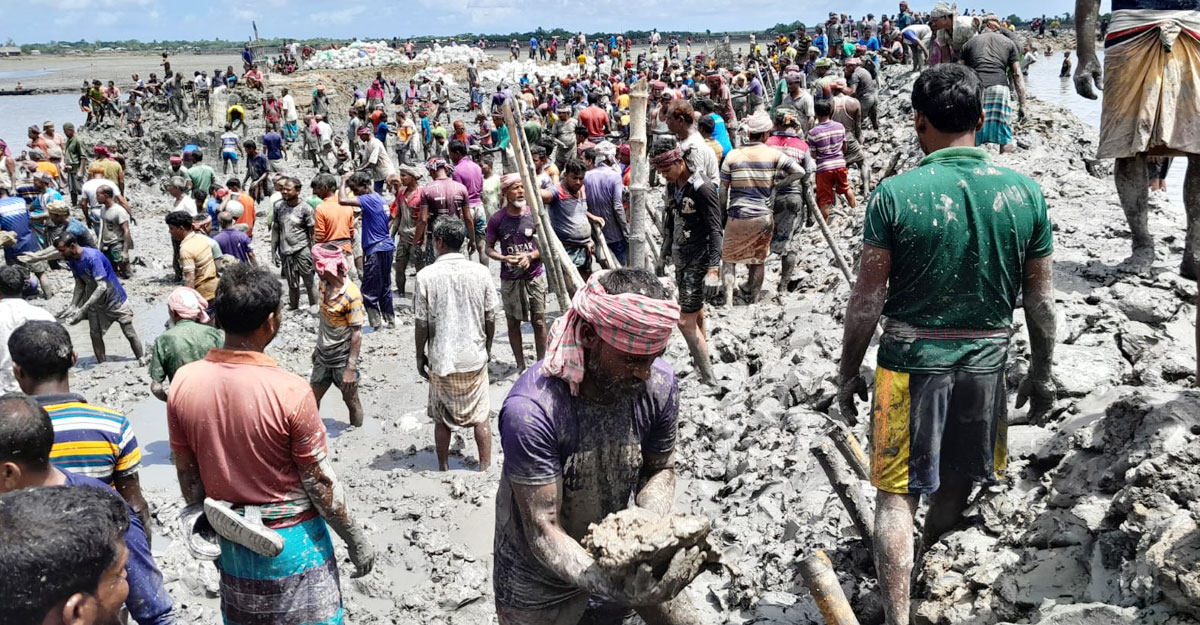 স্বেচ্ছাশ্রমে বাঁধ নির্মাণ করল এলাকাবাসী