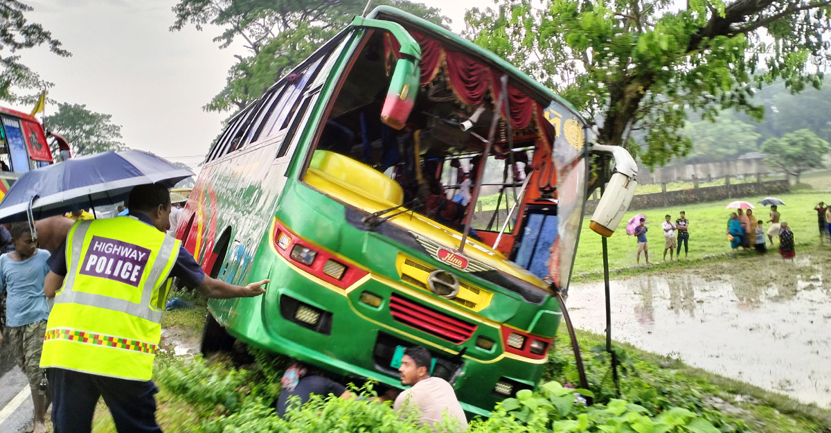 রংপুর সদরের পাগলাপীরে যাত্রীবাহী বাস নিয়ন্ত্রণ হারিয়ে একটি মোটরসাইকেলকে চাপা দিয়ে খাদে পড়ে যায়। এ ঘটনায় মোটরসাইকেলের চালক ও বাসের এক যাত্রী নিহত হয়েছেন। এ ছাড়া আহত হয়েছেন অন্তত ২০ জন। আহতদের রংপুর মেডিকেল কলেজ (রমেক) হাসপাতালে ভর্তি করা হয়েছে।