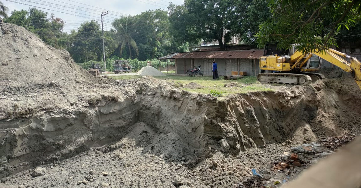 নওগাঁয় আদালতের নিষেধাজ্ঞা অমান্য করে ভূমি অফিস নির্মাণ