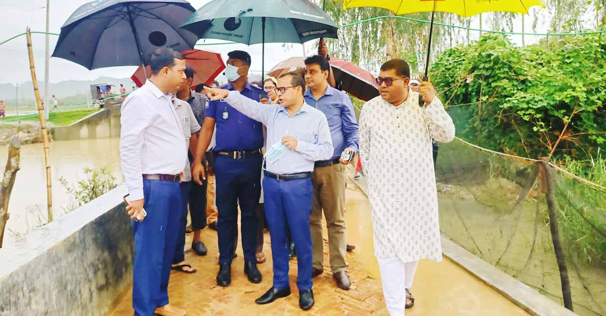 পানিতে ভাসা সেই ঘরগুলো পরিদর্শন করলেন কক্সবাজারের ডিসি
