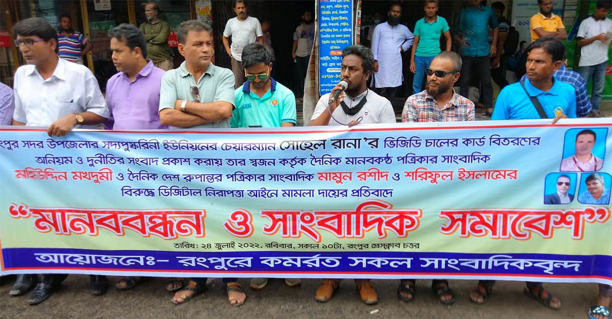 রংপুরে ৩ সাংবাদিকের নামে মামলা, প্রত্যাহারের দাবিতে মানববন্ধন