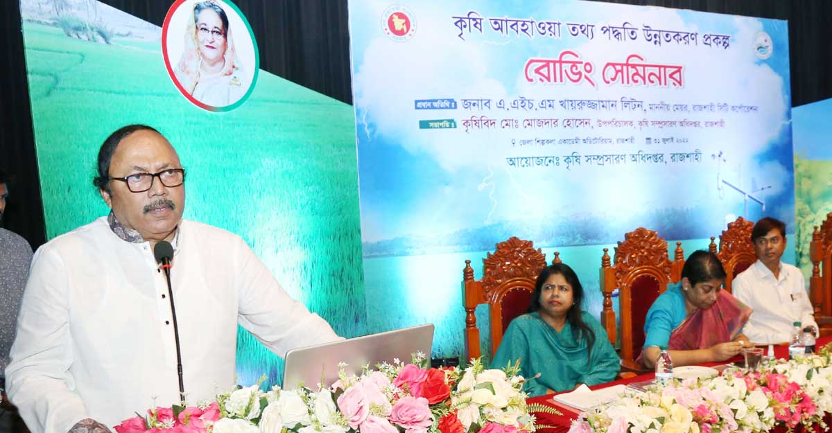 কৃষি সম্প্রসারণ অধিদপ্তর, রাজশাহীর আয়োজনে রোববার (৩১ জুলাই) জেলা শিল্পকলা একাডেমি মিলনায়তনে কৃষি আবহাওয়া তথ্য পদ্ধতি উন্নতকরণ প্রকল্পের আওতায় রোভিং সেমিনারে প্রধান অতিথির বক্তব্যে তিনি এসব কথা বলেন।