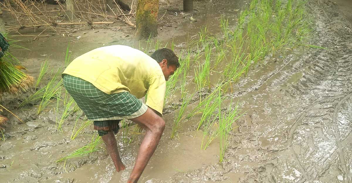 সোমবার (১ আগস্ট) সকালে রংপুরের গঙ্গাচড়া উপজেলার গজঘণ্টা ইউনিয়নের কিশামত হাবুর ৯ নম্বর ওয়ার্ডের উমর জামে মসজিদ সংলগ্ন মোজাহরুলের বাড়ির সামনে কাঁচা রাস্তায় ধানের চারা লাগিয়ে প্রতিবাদ করেন এলাকাবাসী।