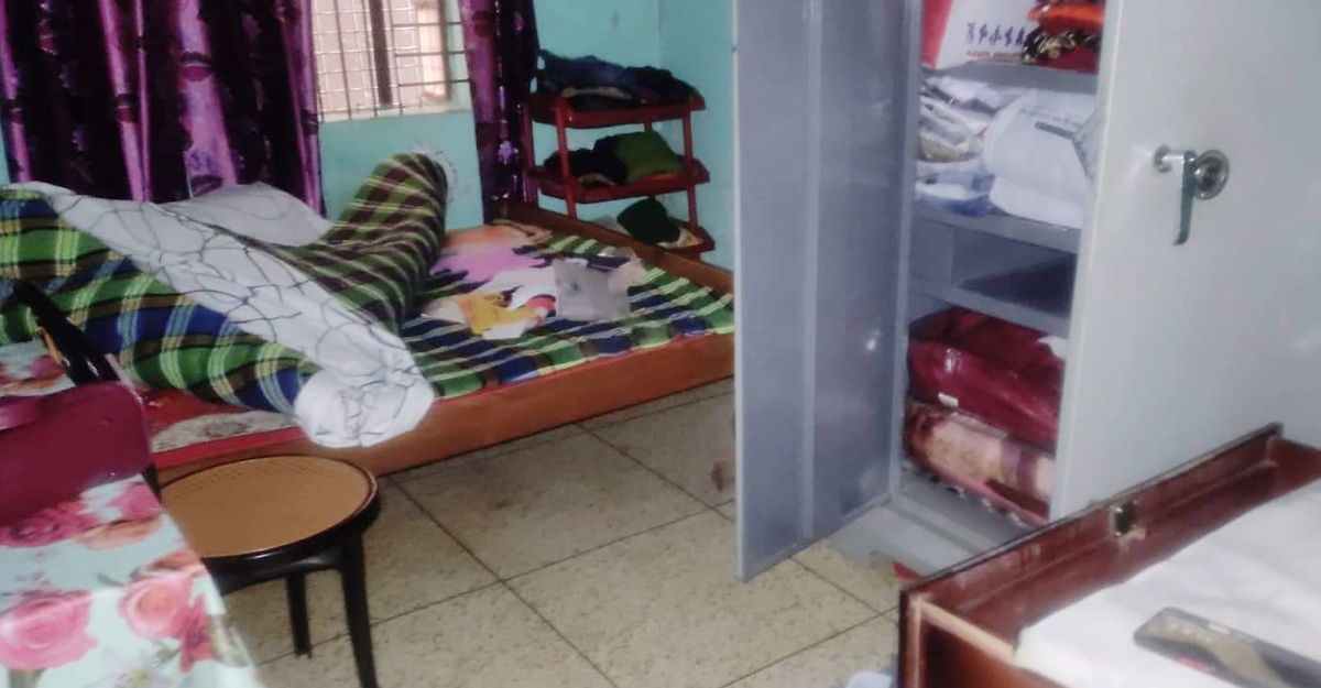 পরে বাসায় ফিরে ঘরের সব কিছু এলোমেলো ও দরজার তালা খোলা দেখতে পান ওই ব্যবসায়ী। পরে আশেপাশের লোকজন নিয়ে রুমে প্রবেশ করে দেখেন স্টিলের আলমারিতে রাখা ৭ লাখ ৩০ হাজার টাকা, ২টি ইসলামী ব্যাংকের ৪ লক্ষ টাকার চেক, একটি শাহজালাল ইসলামী ব্যাংকের ৩ লাখ ২০ হাজার টাকার চেক, ৯০০ গ্রাম স্বর্নালংকার, মূল্য প্রায় ৫৫ লাখ টাকা, রুপা ২ কেজি ৭০০ গ্রাম, মূল্য ২ লাখ টাকা এবং ৯৬ হাজার টাকা মূল্যের একটি আইফোন-৮সহ আরও অনেক মূল্যবান কাগজপত্র নিয়ে যায় দুর্বৃত্তরা।