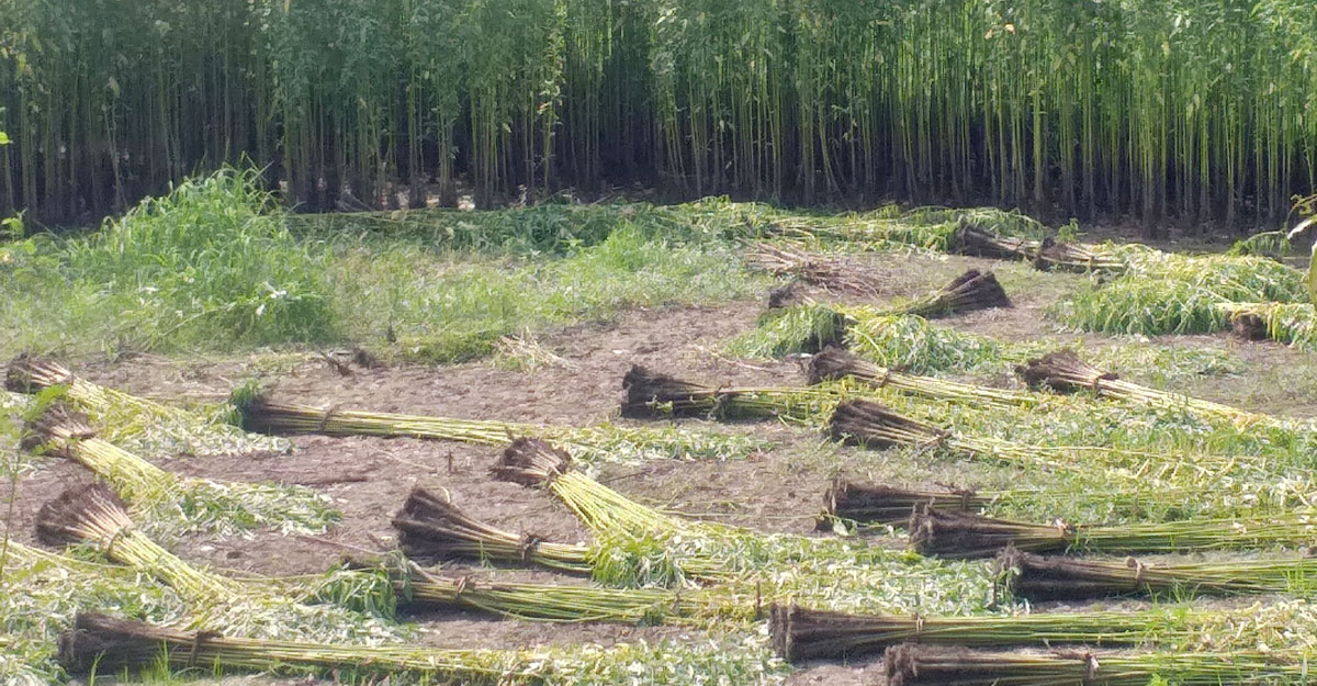কৃষক লতিফ পাট কেটে জমিতে স্তূপ করছেন। তার জমিতে ছিপছিপে পানি। তাই পাটের গোড়া কালো হয়ে যাচ্ছে। বাধ্য হয়ে পাট কেটে ভেজা জমিতে রেখেছেন। লতিফ বলেন, ছিপছিপে পানি থাকায় পাটের গোড়া কালো হয়ে যাচ্ছে। গোড়ায় পচন ধরছে। বাতাস এলেই হেলে পড়ছে পাট। বাধ্য হয়ে কেটে ফেলছি। ধারে-কাছে পানি নেই। অনেক দূরে অল্প পানি আছে। মাথায় করে নিয়ে ভেজাতে হবে। কিন্তু এতে যে শ্রমিক খরচ পড়বে, তাতে পাট ভালো হলেও লাভ হবে না।