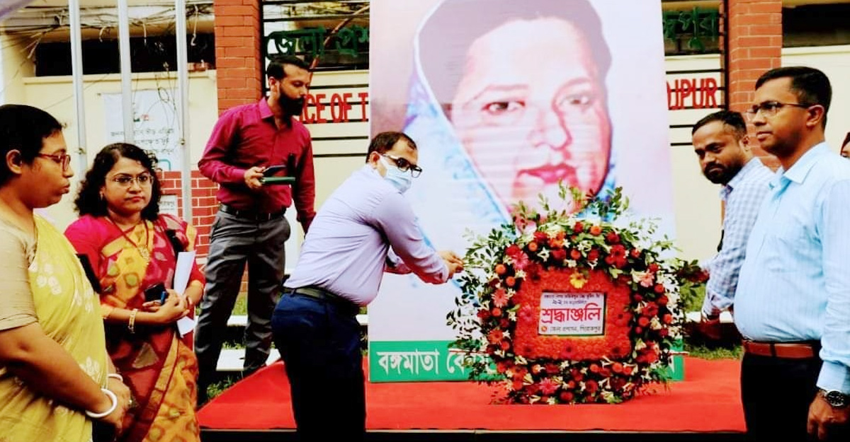 এর আগে জেলা প্রশাসক কার্যালয়ের সামনে বঙ্গমাতা শেখ ফজিলাতুন নেছা মুজিবের প্রতিকৃতিতে পুষ্পমাল্য অর্পণ করেন জেলা প্রশাসক মো. জাহেদুর রহমানসহ জেলা প্রশাসনের অন্যান্যরা।