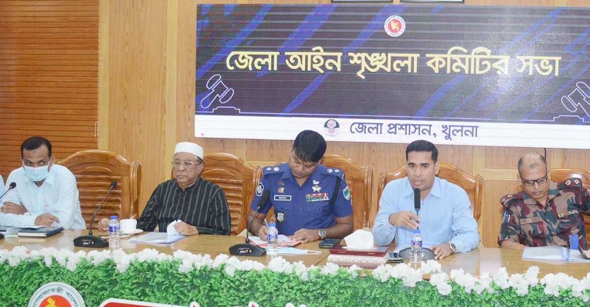 অতিরিক্ত জেলা ম্যাজিস্ট্রেট পুলক কুমার মণ্ডল সভায় গত মাসে খুলনা জেলার আইনশৃঙ্খলা পরিস্থিতি তুলে ধরেন। খুলনা জেলা অধিক্ষেত্রে গত জুলাই মাসে ডাকাতি ১টি, চুরি ৬টি, খুন ২টি, অস্ত্র আইন ২টি, ধর্ষণ ২টি, নারী ও শিশু নির্যাতন ১৫টি, নারী ও শিশু পাচার ২টি, মাদকদ্রব্য ৬১টি এবং অন্যান্য ৯৫টিসহ মোট ১শ ৮৫টি মামলা দায়ের করা হয়েছে। যা গত জুন মাসে দায়ের হওয়া মামলার চেয়ে ১টি কম।
