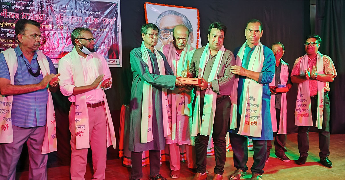 'শিল্প-সাহিত্য সংস্কৃতি হোক আমাদের আত্মোপলব্ধির প্রথম পাঠ'— এই স্লোগান সামনে রেখে রাজবাড়ী-ফরিদপুর সাংস্কৃতিক বিনিময়-২০২২-এ হাজার বছরের শ্রেষ্ঠ বাঙালি জাতির জনক বঙ্গবন্ধু শেখ মুজিবুর রহমানের ৪৭তম শাহাদাতবার্ষিকী উপলক্ষে আলোচনা সভা, গুণীজন সম্মাননা ও মুক্তিযুদ্ধভিত্তিক নাটক ‘ফেরা’ মঞ্চায়িত হয়েছে।