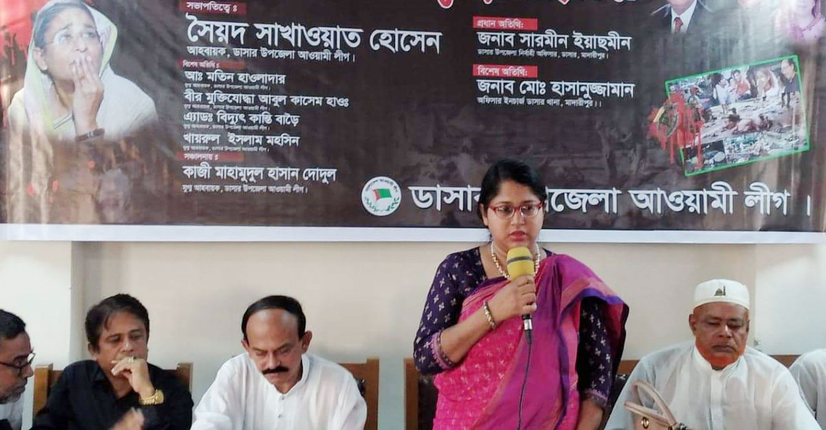 মাদারীপুরের ডাসারে আওয়ামী লীগের দলীয় অনুষ্ঠানে উপজেলা নির্বাহী কর্মকর্তা শারমিন ইয়াছমীনকে প্রধান অতিথি করায় উপজেলাজুড়ে সমালোচনা চলছে। রোববার (২১ আগস্ট) রাতে এ সংক্রান্ত একটি ছবি সামাজিক যোগাযোগমাধ্যম ফেসবুকে ভাইরাল হয়েছে।