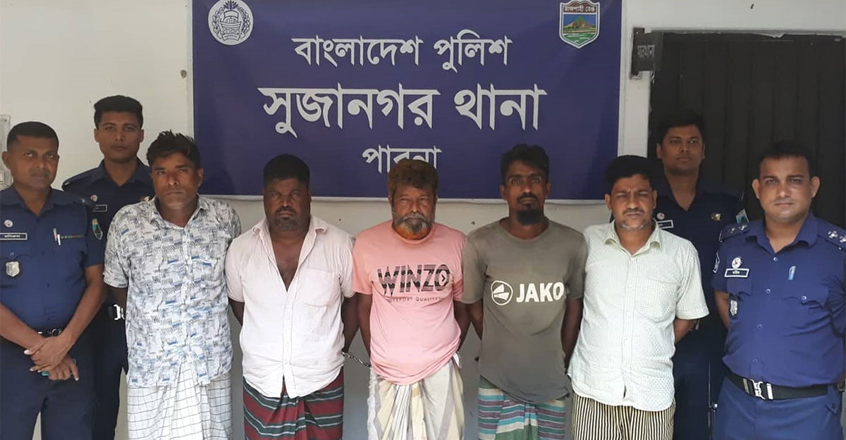পাবনার সুজানগরে জাহাঙ্গীর আলম ওরফে জানু (৬৮) নামে এক অবসরপ্রাপ্ত পুলিশ সদস্য হত্যার ঘটনায় করা মামলার প্রধান অভিযুক্ত আশরাফ আলীসহ পাঁচজনকে গ্রেপ্তার করেছে পুলিশ।
