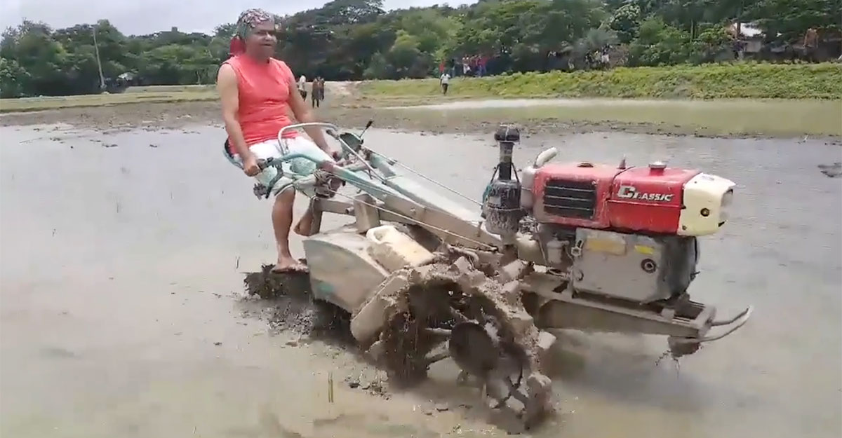 ভিডিওতে দেখা যায়, লুঙ্গি পরে ও মাথায় গামছা বেঁধে পাওয়ার টিলারে বসে জমি চাষ করছেন। কেউ একজন সেই দৃশ্য ধারণ করেন। পরে তা সামাজিক যোগাযোগমাধ্যমে প্রকাশ করা হয়।