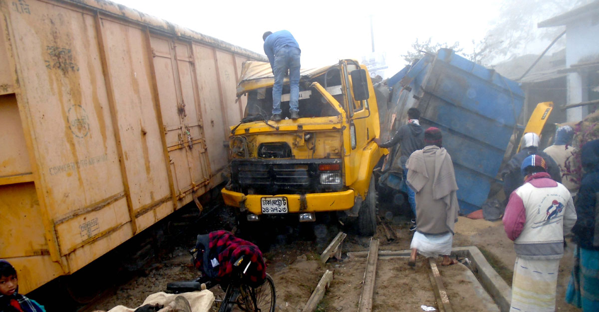 চলন্ত ট্রেনে ট্রাকের ধাক্কা, গেটম্যান নিহত