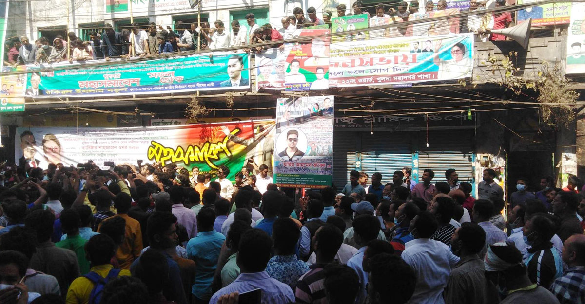 খুলনায় বিএনপির কার্যালয়ের সামনে নেতাকর্মীদের ভিড়
