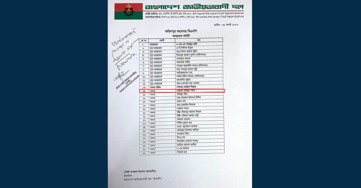 ফরিদপুর বিএনপির মহানগর কমিটিতে মৃত ব্যক্তির নাম