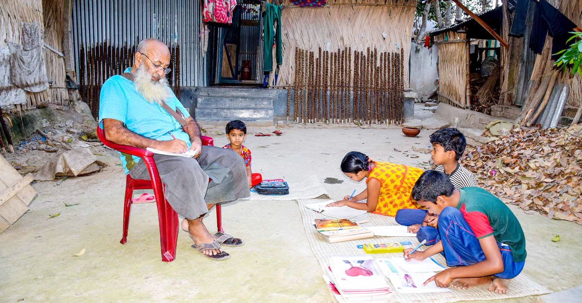 প্লে থেকে পঞ্চম শ্রেণির শিক্ষার্থীদের প্রাইভেট পড়াচ্ছেন বৃদ্ধ ফখরুল আলম