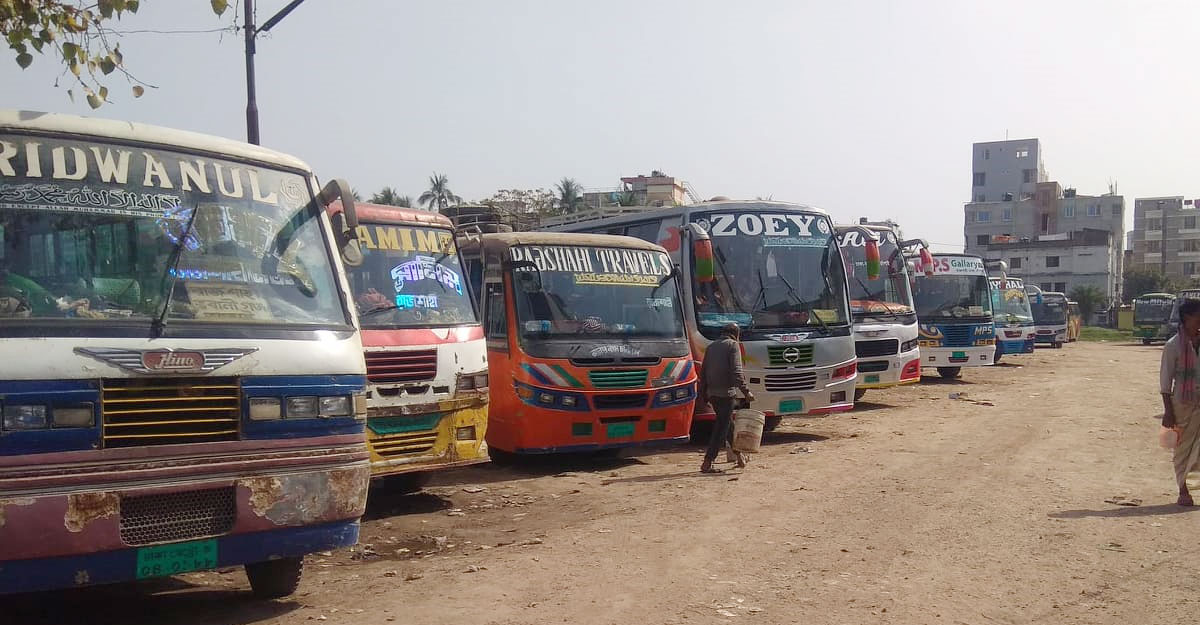 রাজশাহীতে আন্তঃজেলা বাস বন্ধ রেখেছেন মোটর শ্রমিকরা