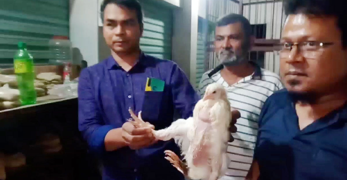 শুক্রবার (২৩ সেপ্টেম্বর) রাতে বন্দর থানার বাবুপাড়া এলাকায় পোলট্রি ব্যবসায়ী মনির হোসেনের দোকানে চার পায়ের একটি ব্রয়লার মুরগির সন্ধান মিলে।
