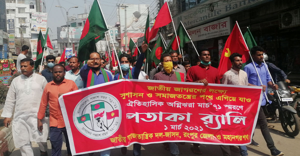 রংপুরে পতাকা র্যালি করেছে জাতীয় সমাজতান্ত্রিক দল-জাসদ